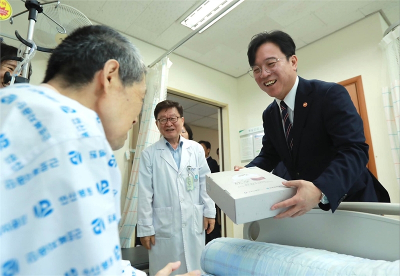 김영훈 고용노동부 장관은 지난 9월 29일 근로복지공단 안산병원을 찾아 입원 병동과 재활치료시설을 둘러보며 추석 명절에 가족과 함께하기 어려운 산재 환자를 위문했다.